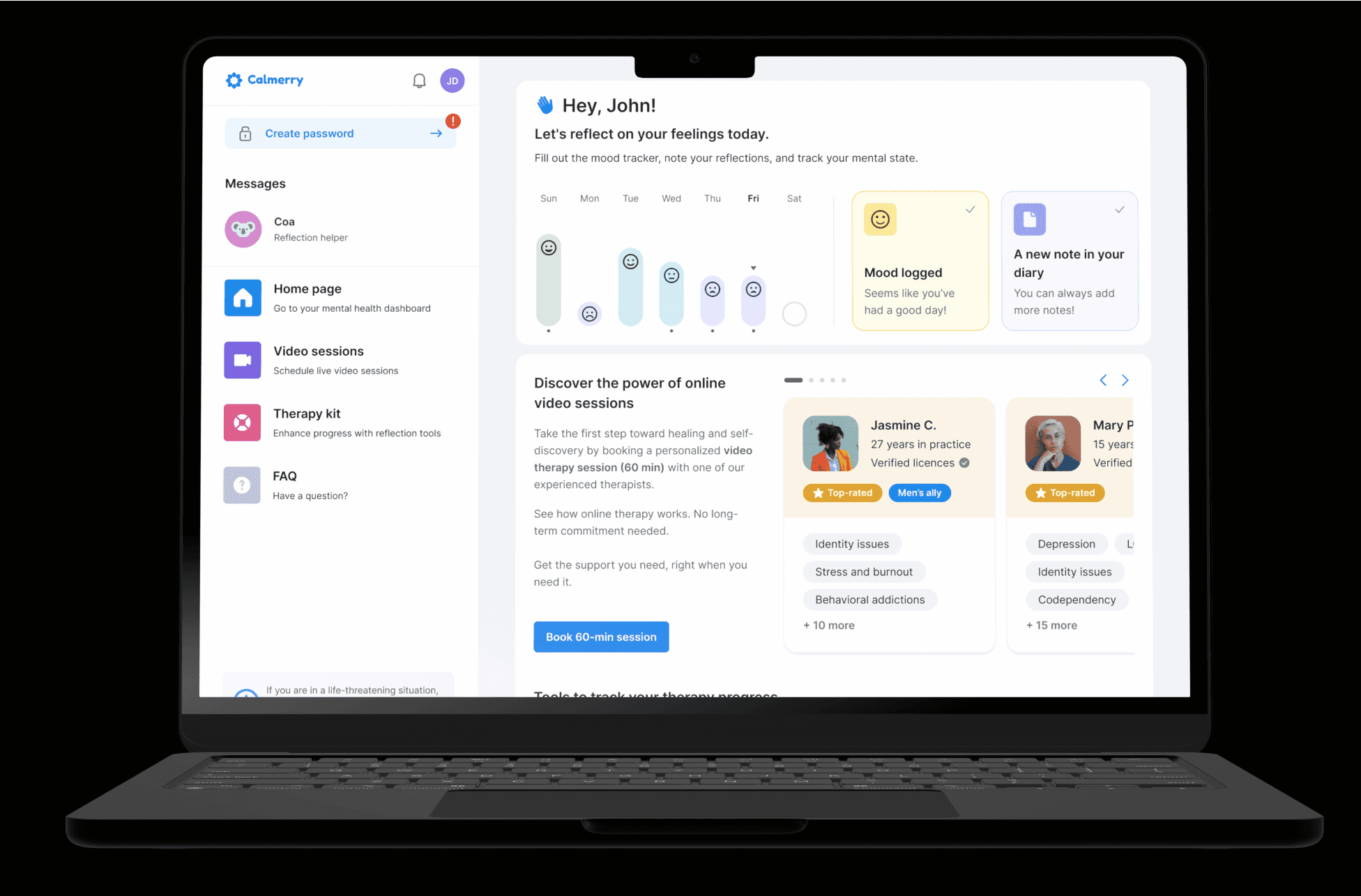 Platforms and mobile apps for online mental health therapy