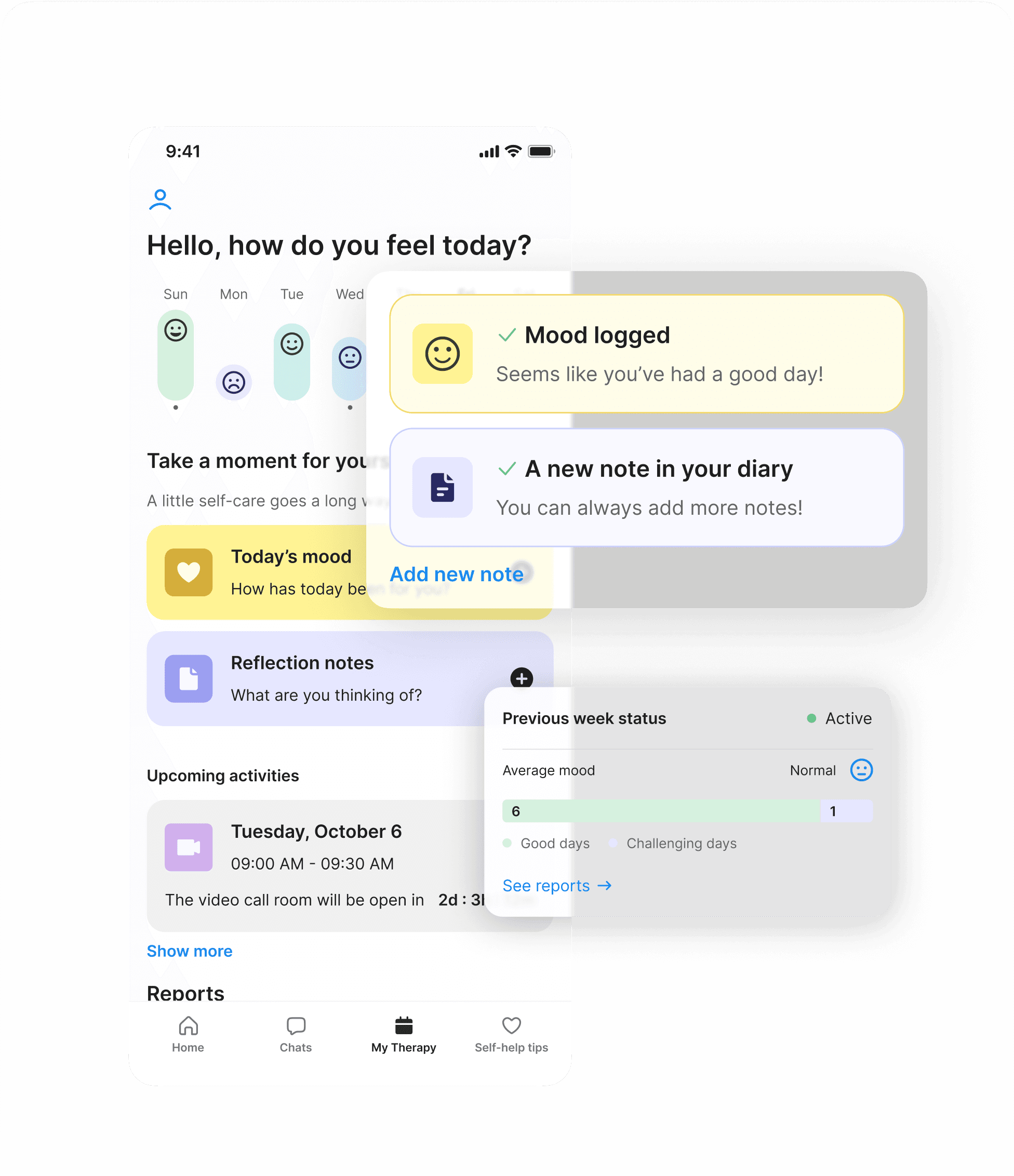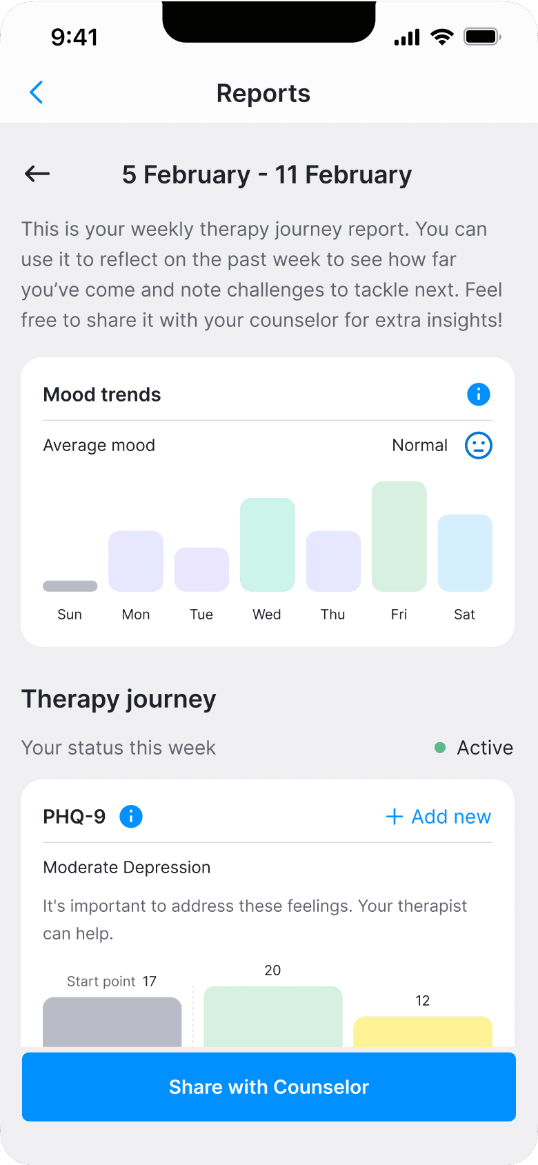 Mood tracker and reflection notes were added to monitor progress