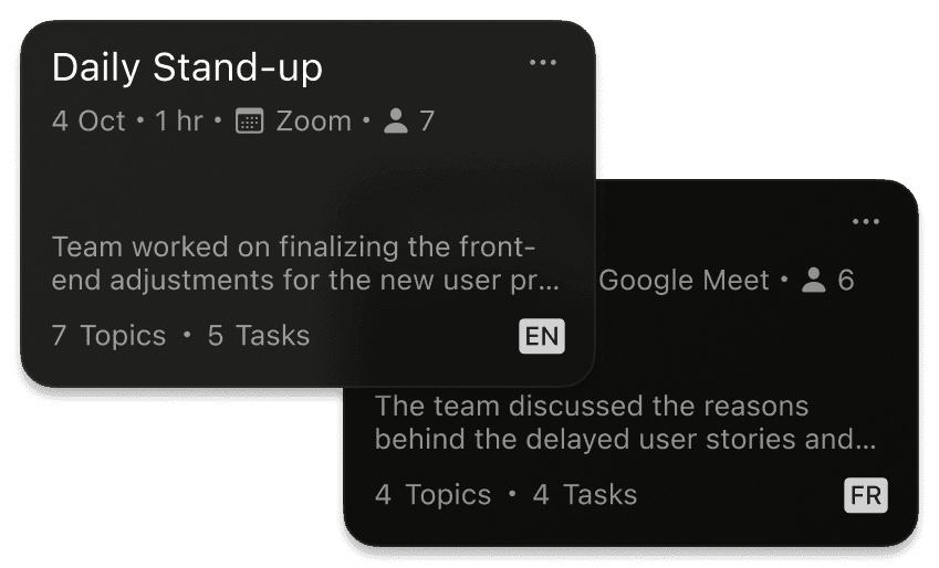 Both the card view and detailed screen were restructured for the post-meeting analysis.