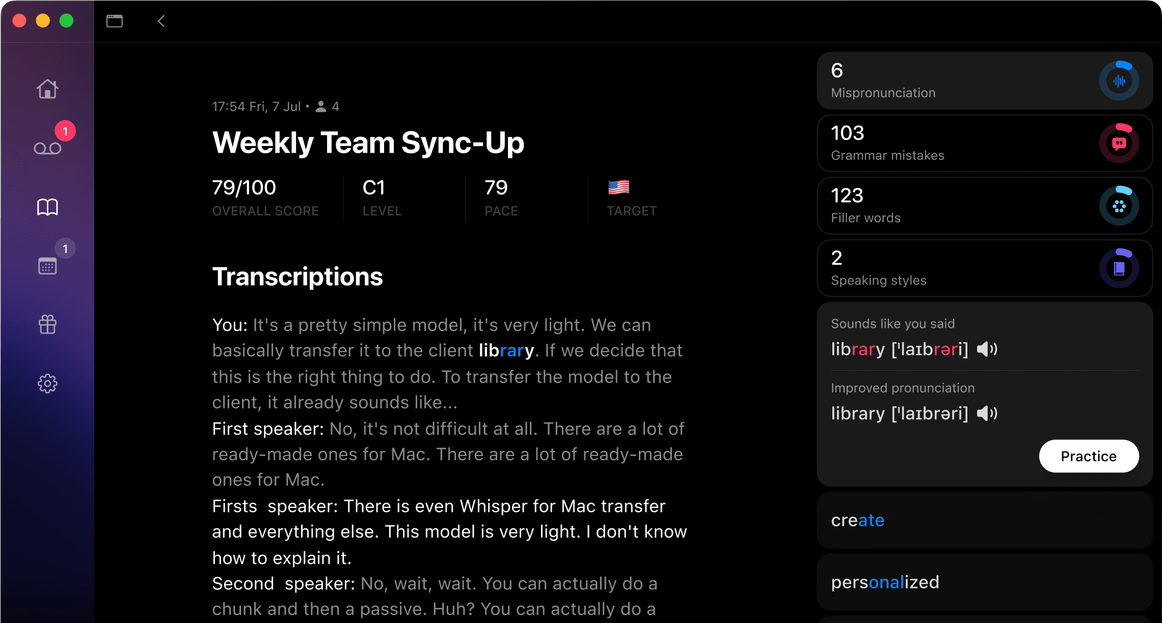 personalized insights on real-life speech and identify areas where need to improve