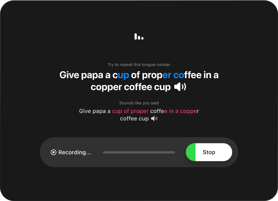 Guided speech exercises are designed around their past mistakes to enhance language skills.